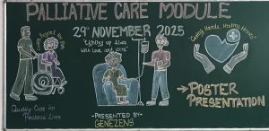 Students presented posters in three groups covering topics such as palliative and hospice care, end-of-life care, pain management, nursing and communication skills, and the role of ASHA/CHO. The presentations were informative, enthusiastic, and educational.