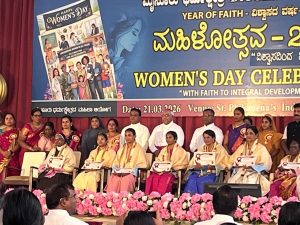 During the Women’s Day Celebration organized by the Diocese of Mysore – Commission for Women on 21st March 2026 at St. Philomena’s Indoor Auditorium, Mysuru, Sr. Philomeana Nimmy was specially honored for her remarkable contributions in the field of health.